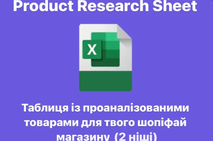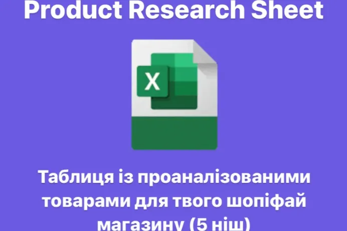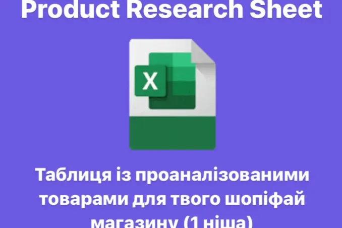 У таблицю входить 2 ніші із 7 ніш на вибір та 10 відібраних товарів для вашого Шопіфай Магазину по кожній ніші: